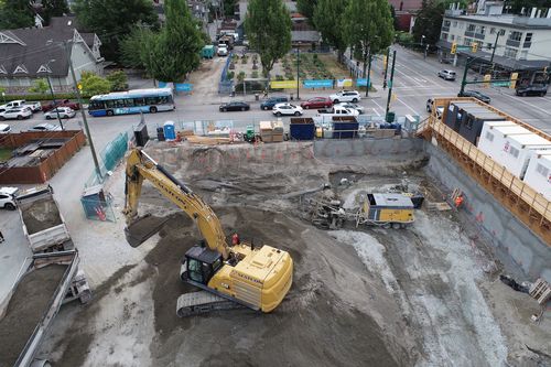 Matcon successfully executed bulk excavation and shoring for a residential tower in Burnaby, with unique challenges posed by its adjacency to the Millennium Line Skytrain.